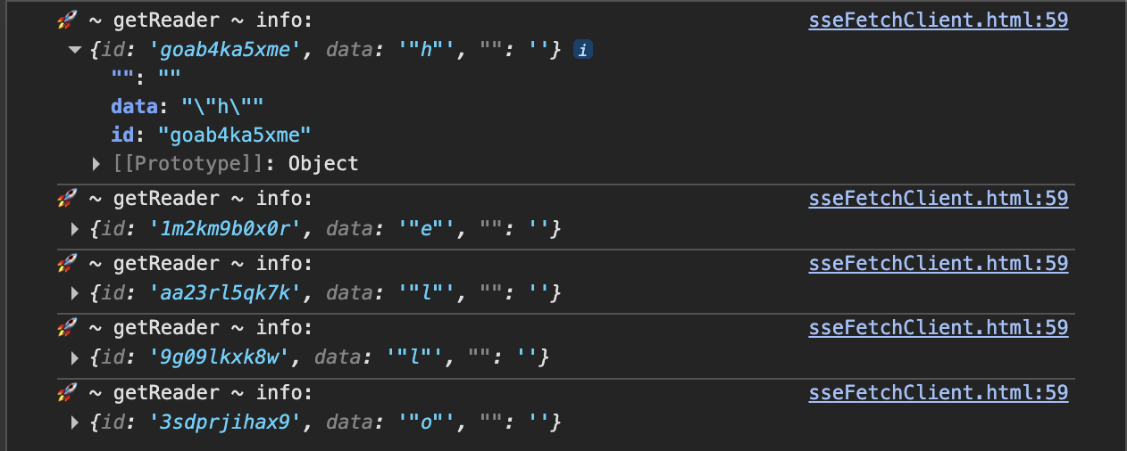 下面示例展示如何用 fetch + ReadableStream 在浏览器端手动解析 SSE 数据流(简洁版):